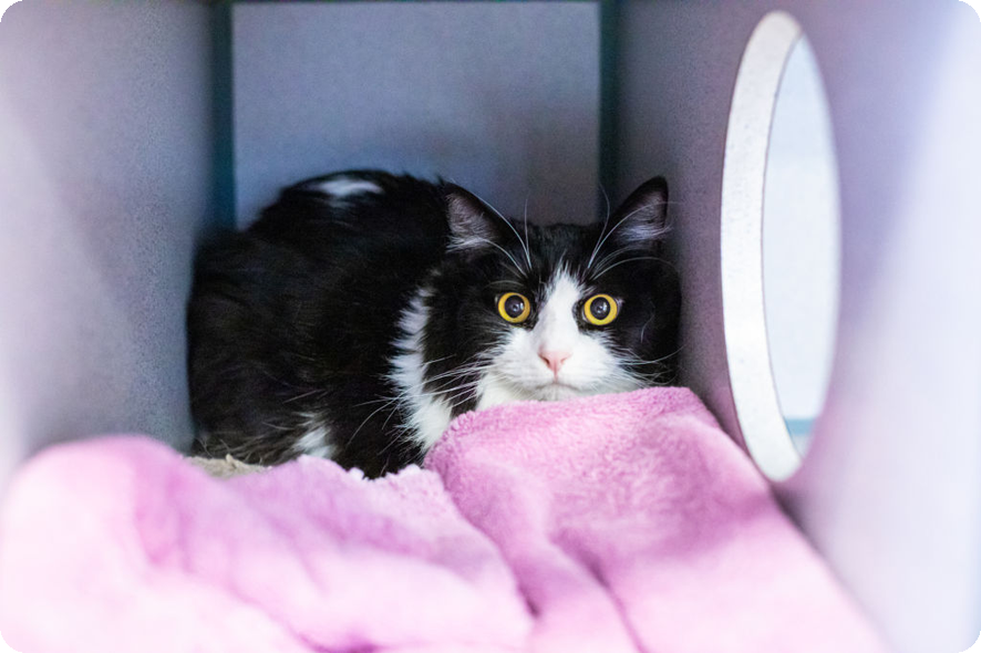 고양이는 자신의 영역을 중시하는 동물입니다. 안정감을 줄 수 있는 전용 공간을 만들어 주면 스트레스 해소에 도움이 됩니다.